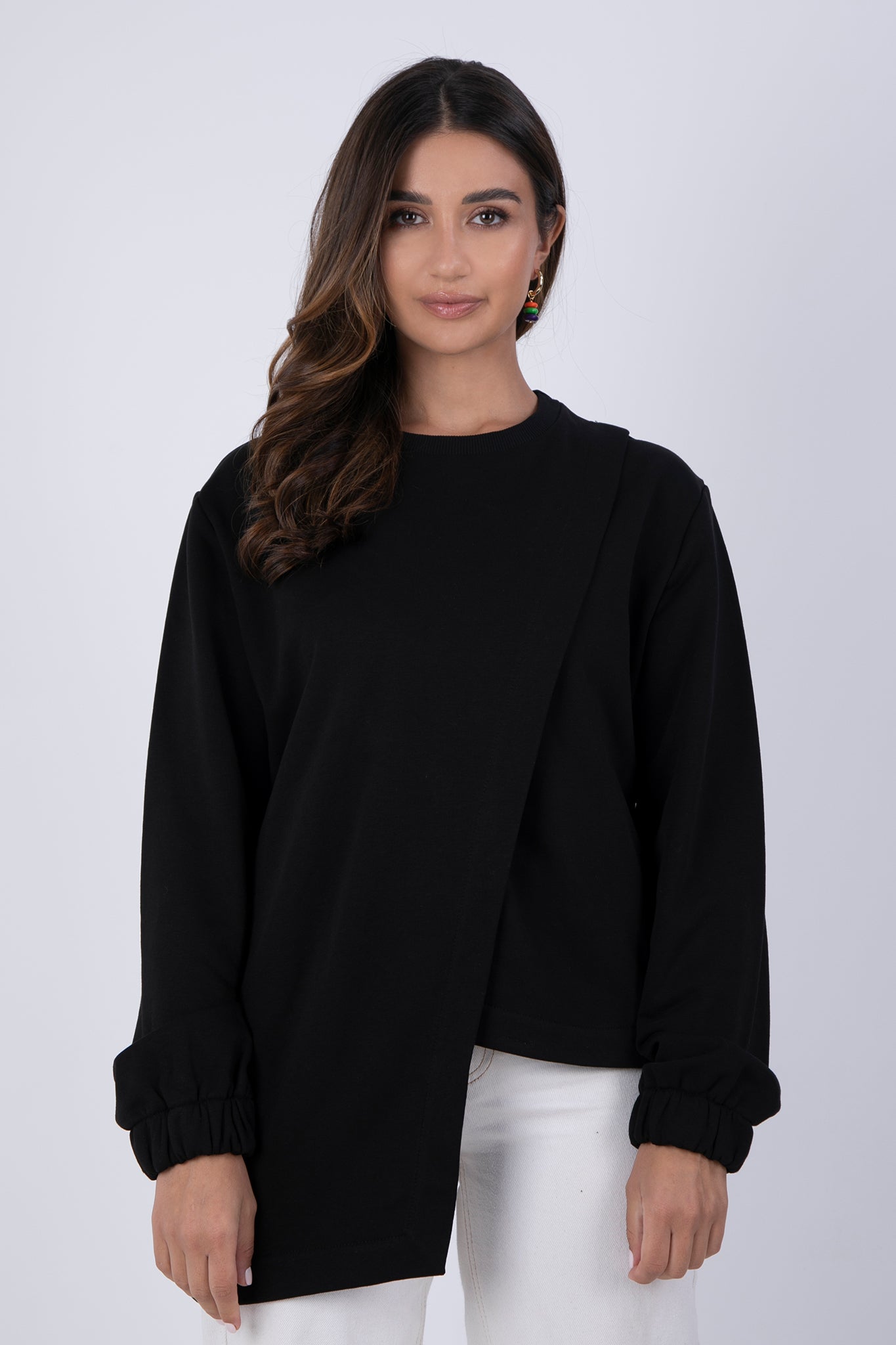 ZGEST Contrast sweater with cacoon sleeves and asymmetric hem in white