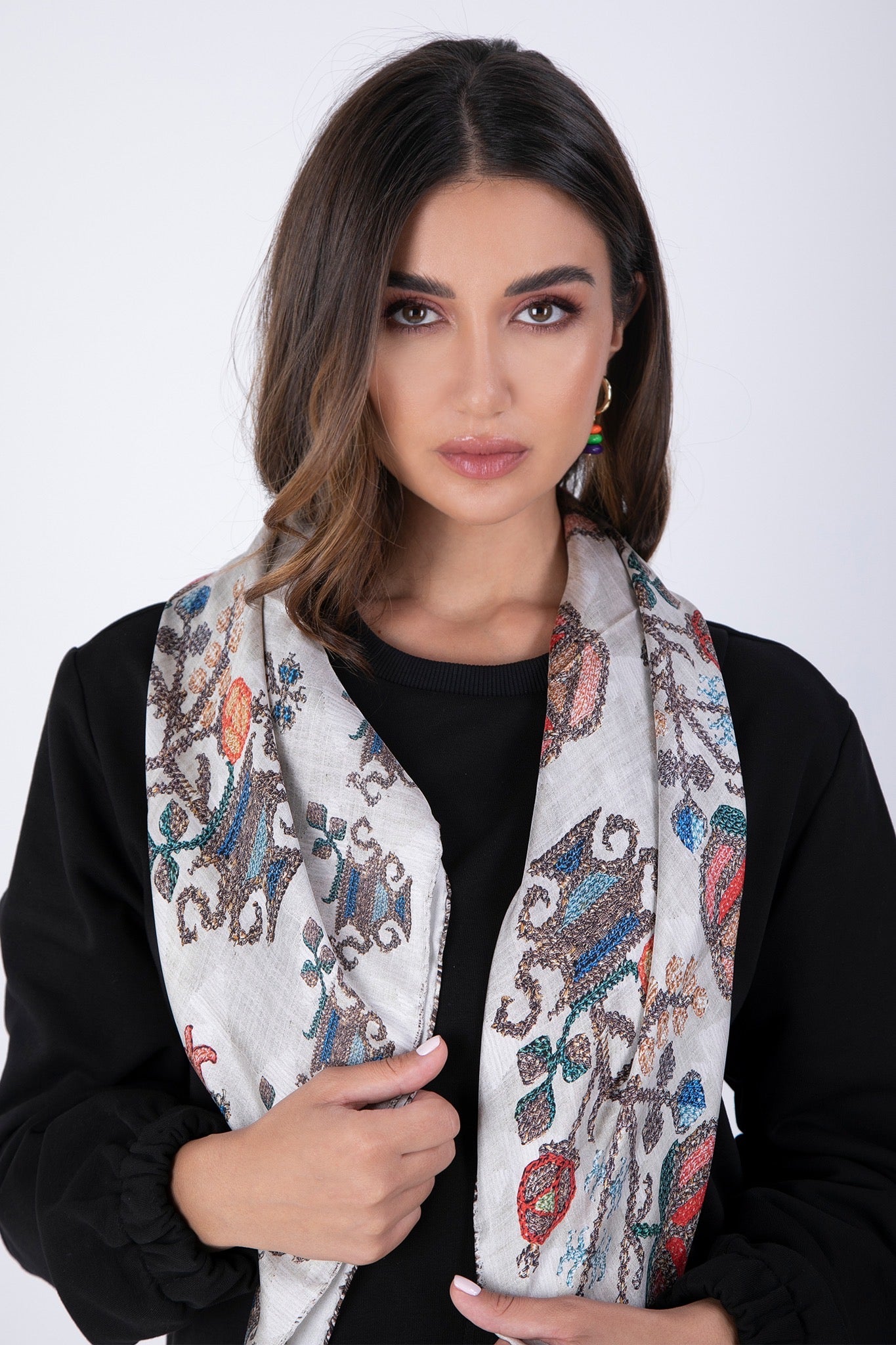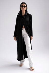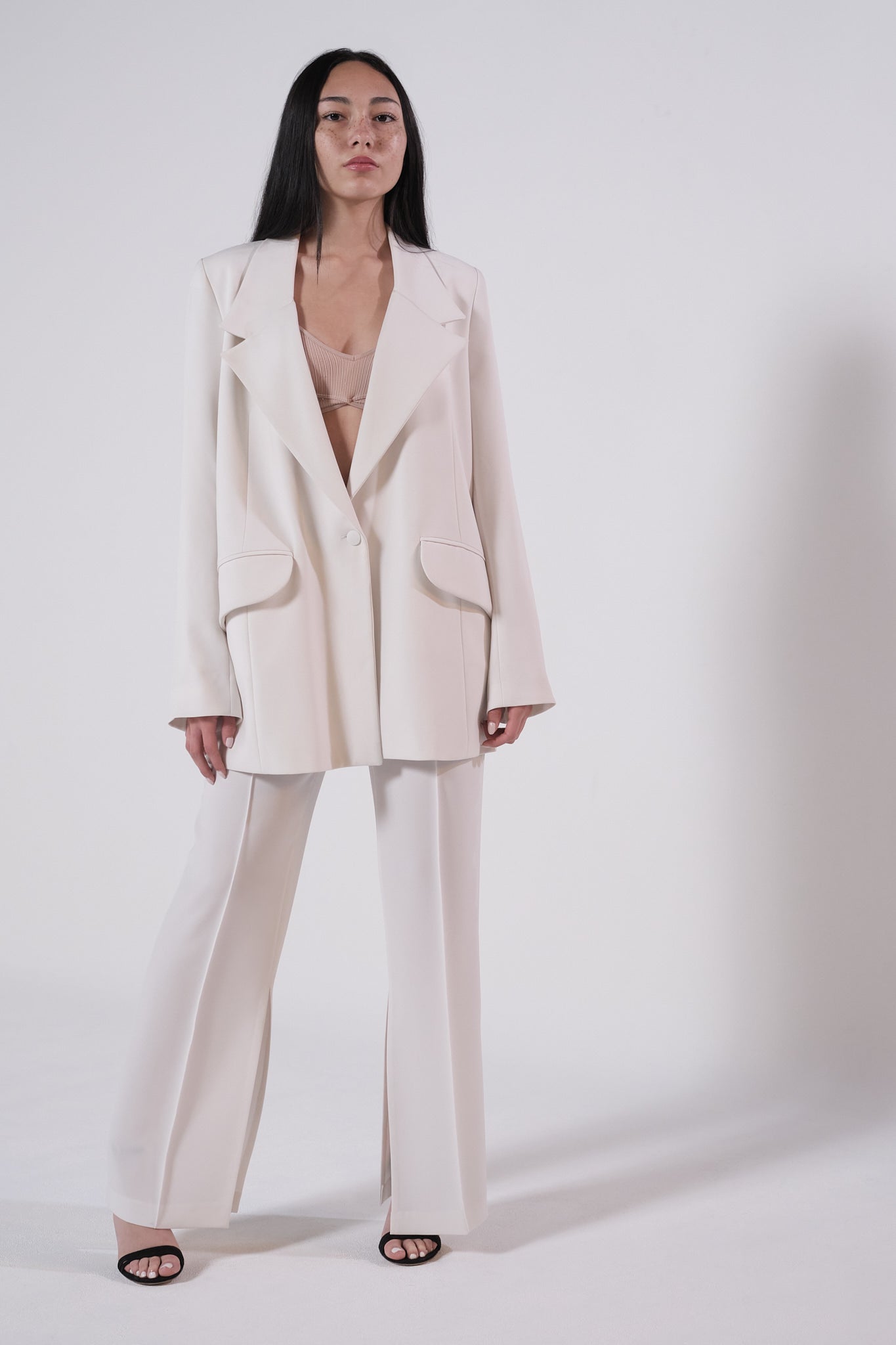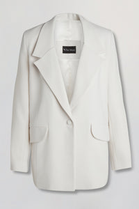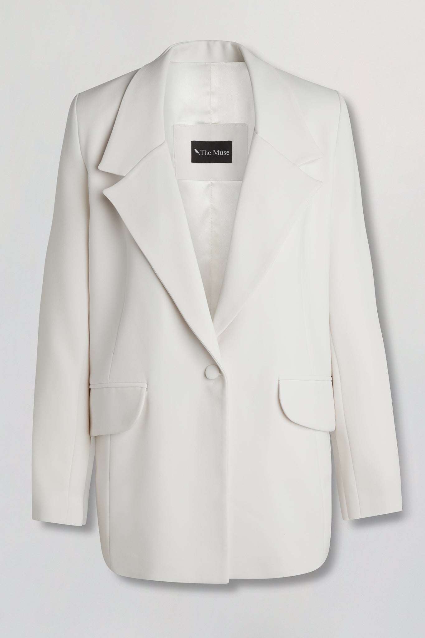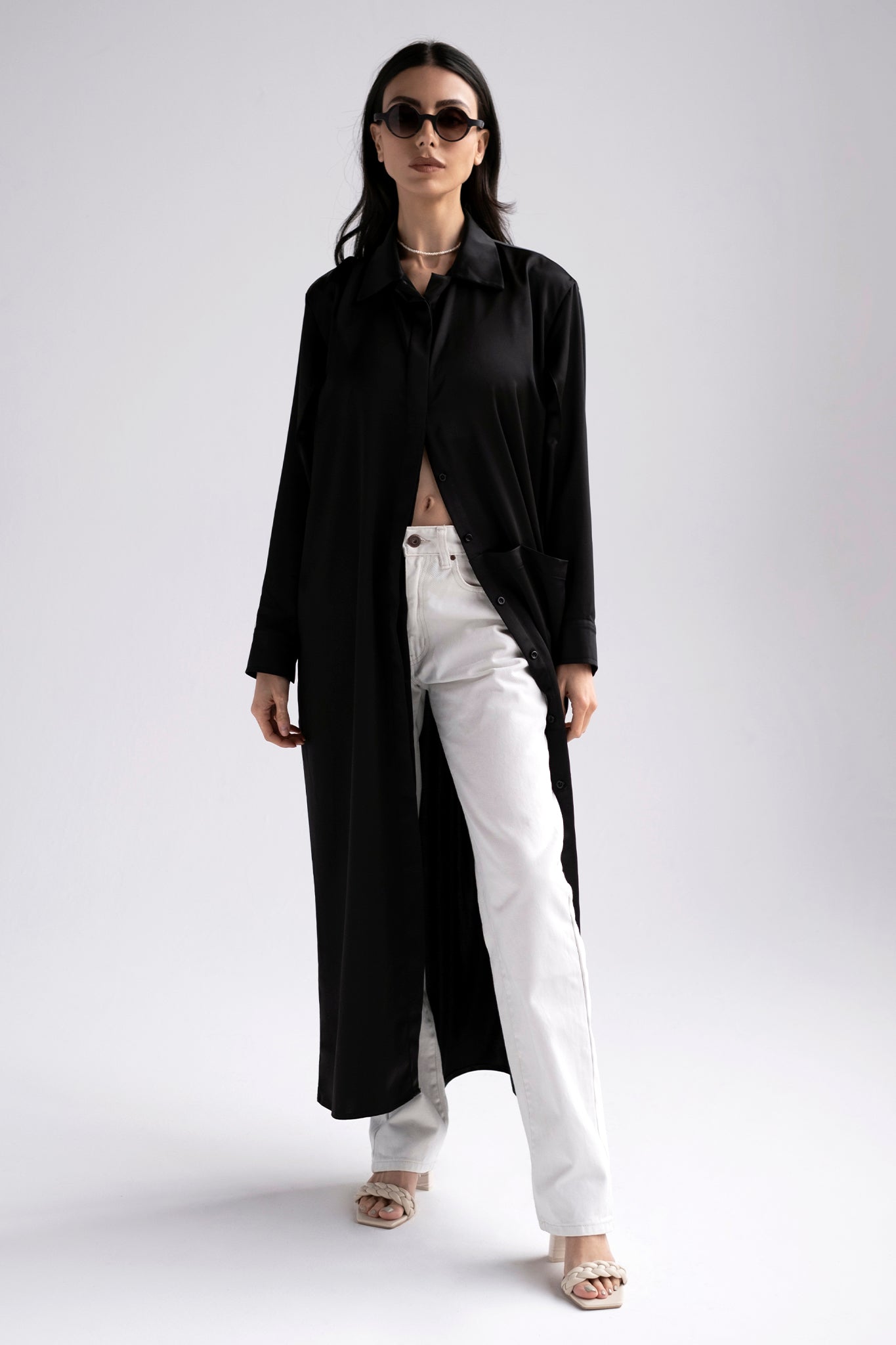 RUZANE Oversized silk long collarless shirt with high pocket in white