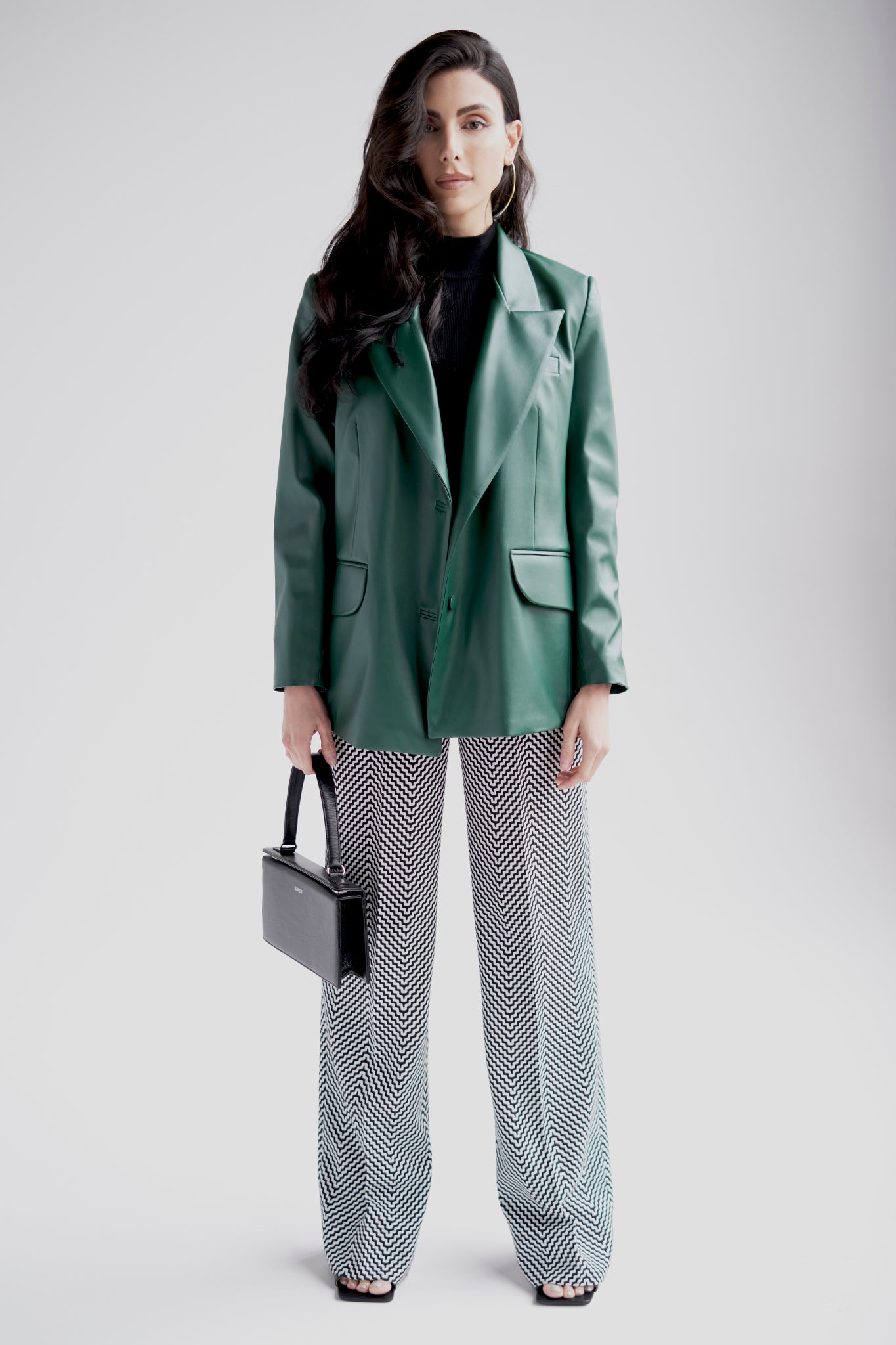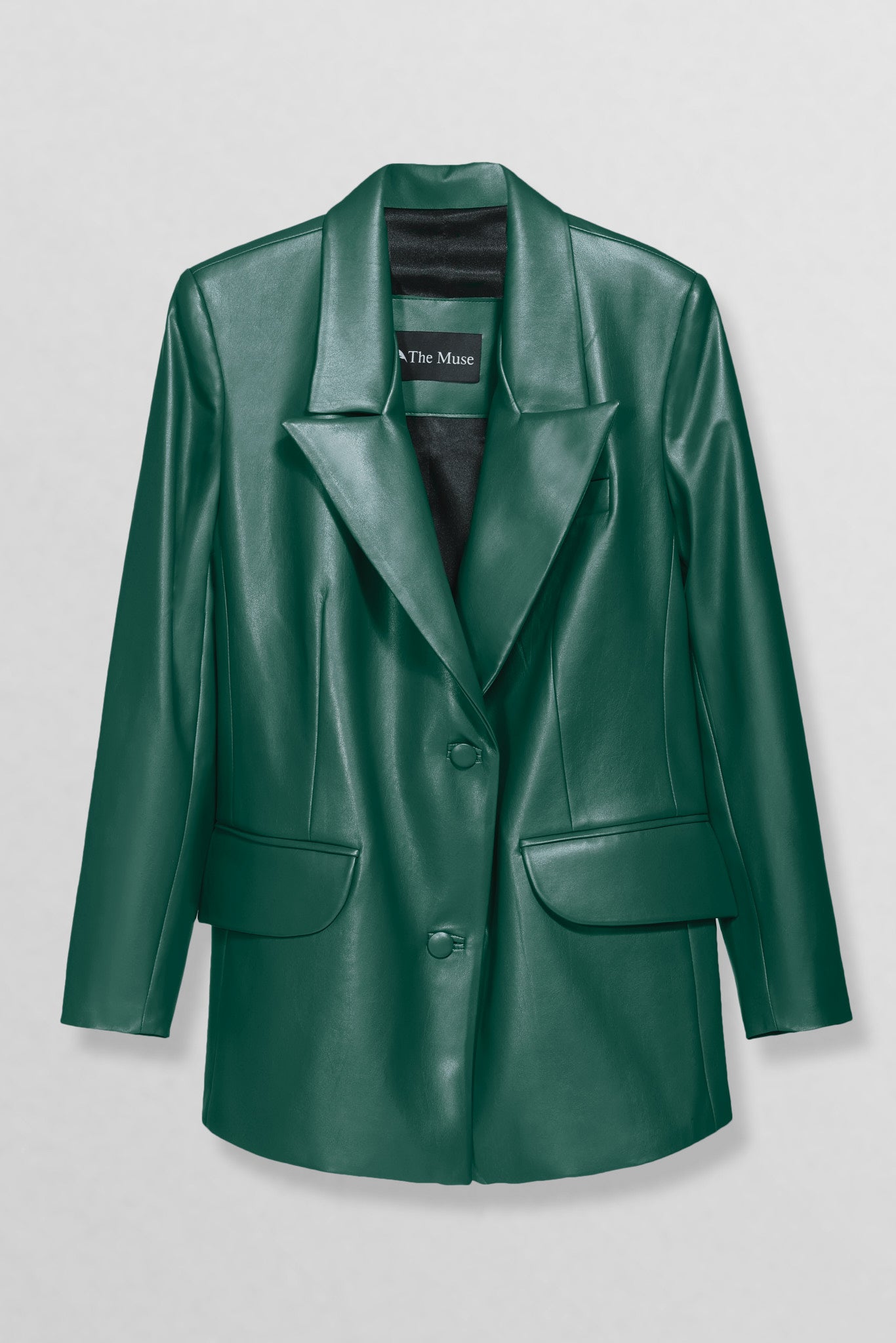 The Muse Vegan leather shirt with pleated balloon sleeves in maroon