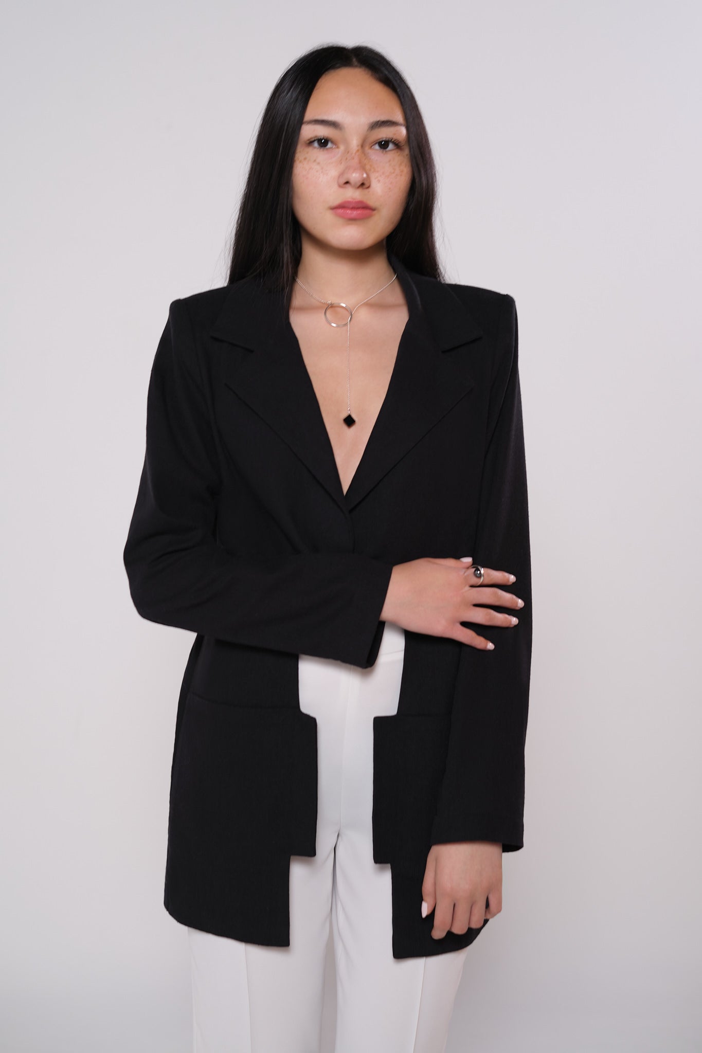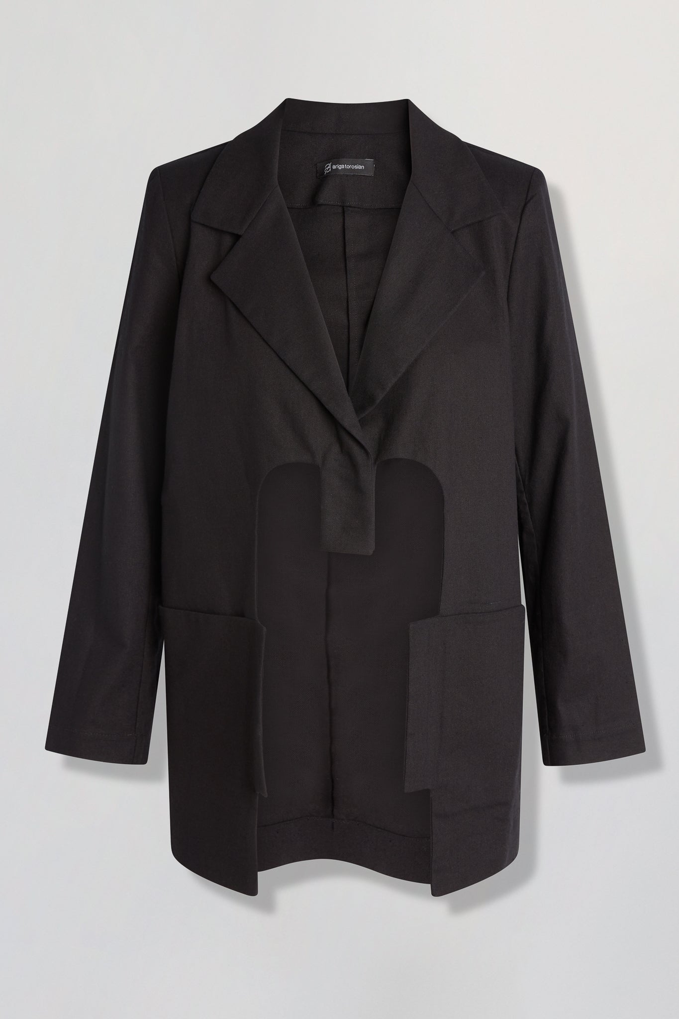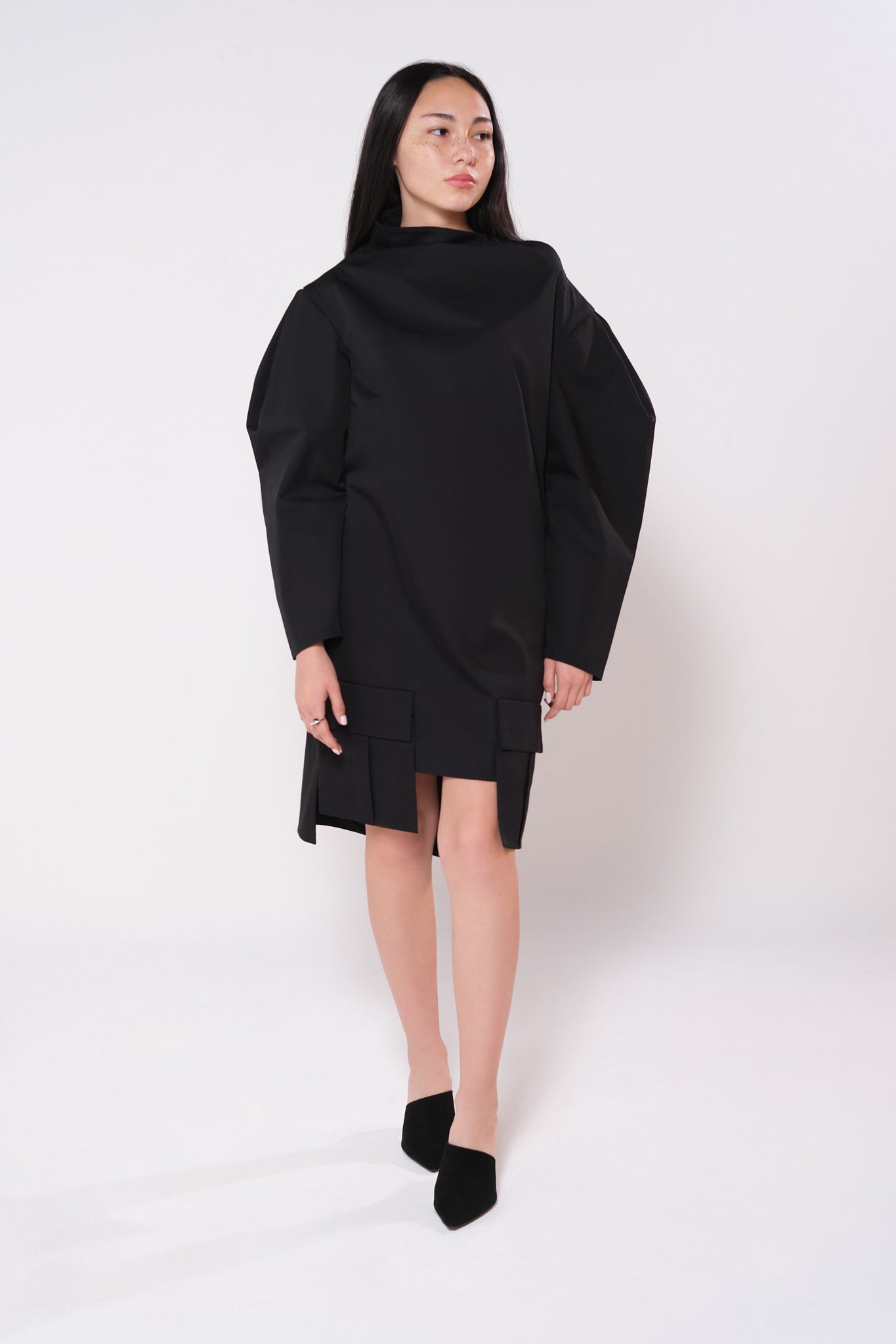 ZGEST Puff sleeve short dress with hanging pockets in black