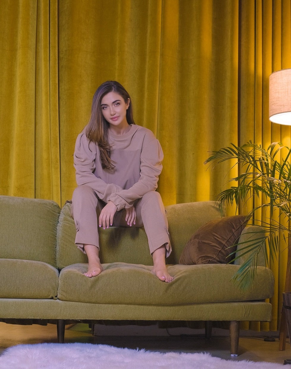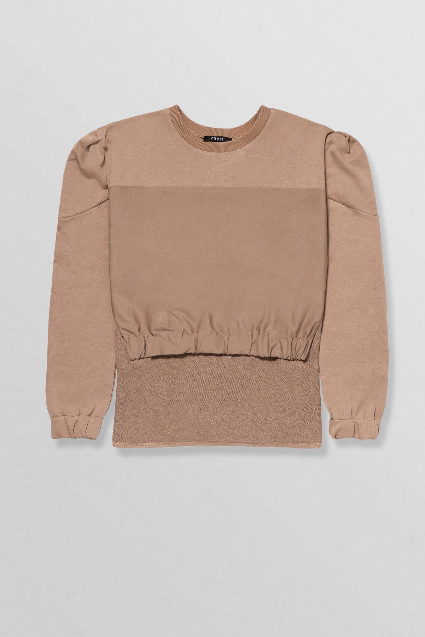 ZGEST Contrast sweater with cacoon sleeves and asymmetric hem in tan