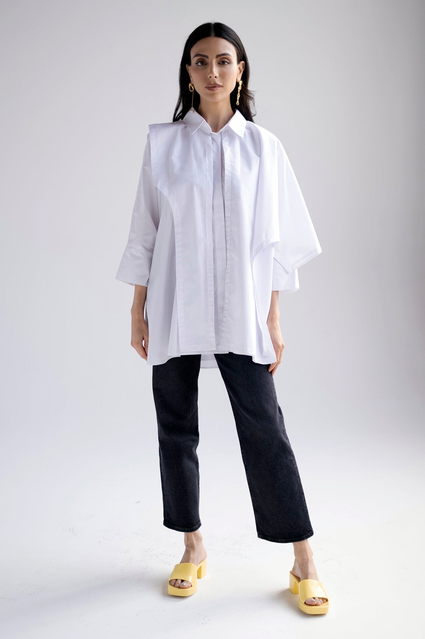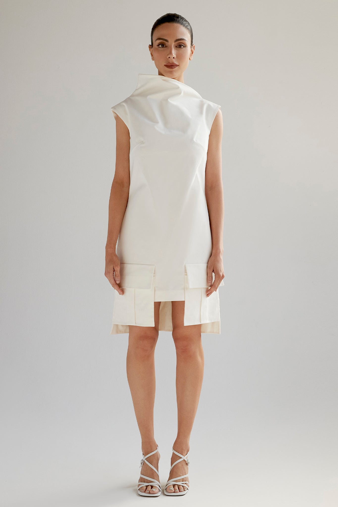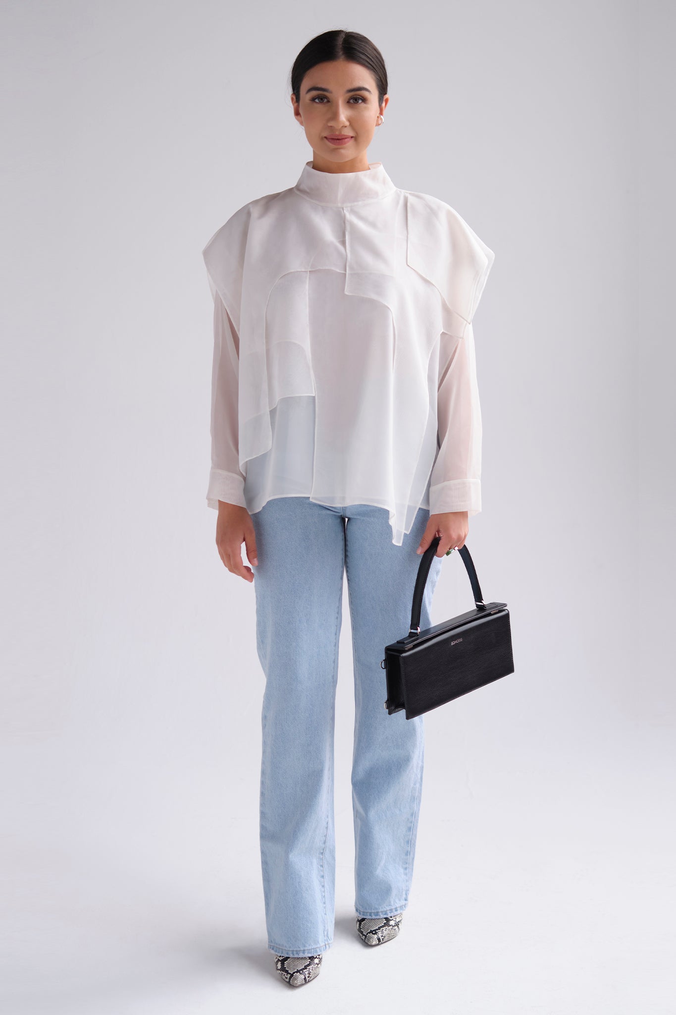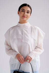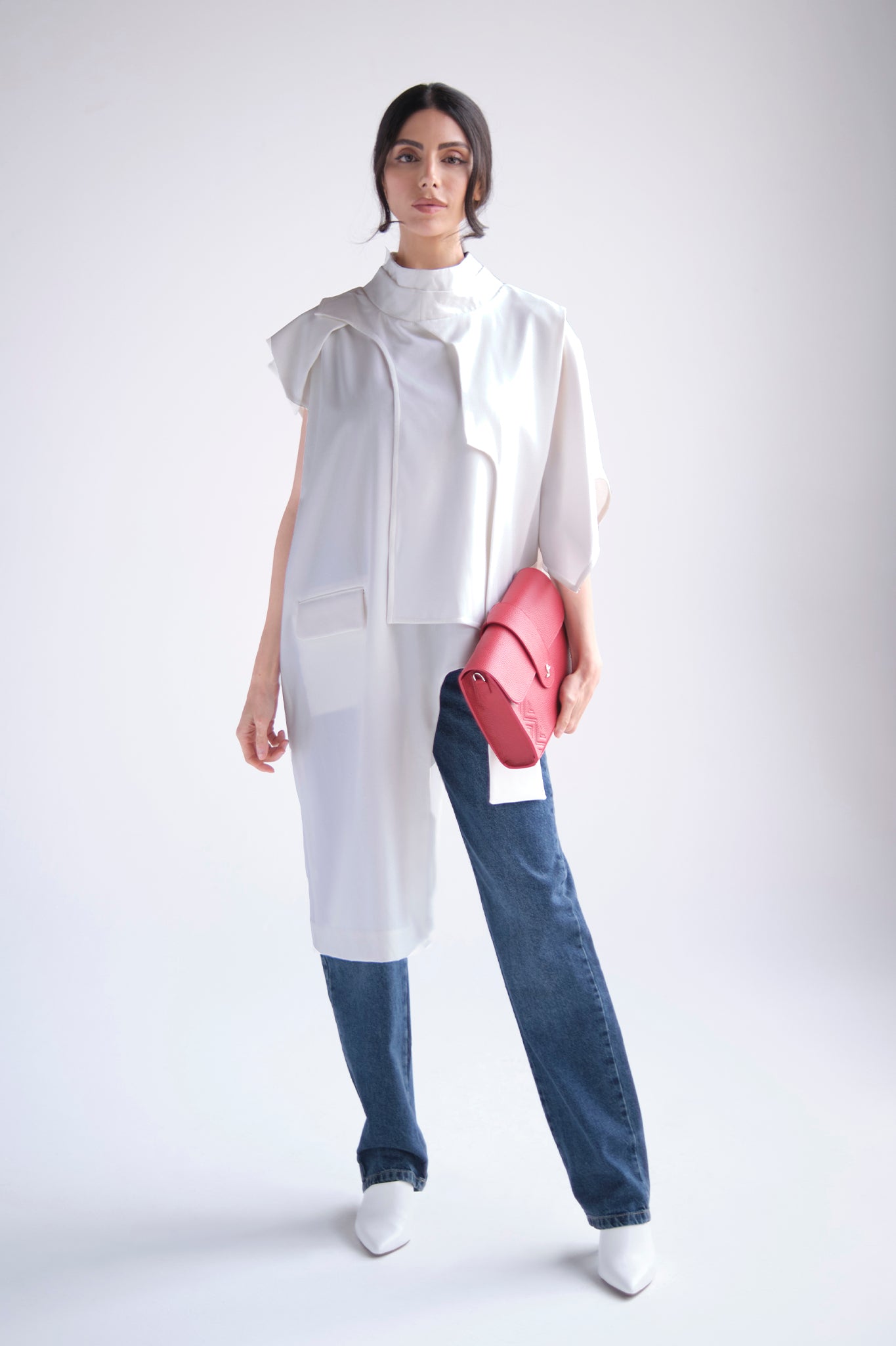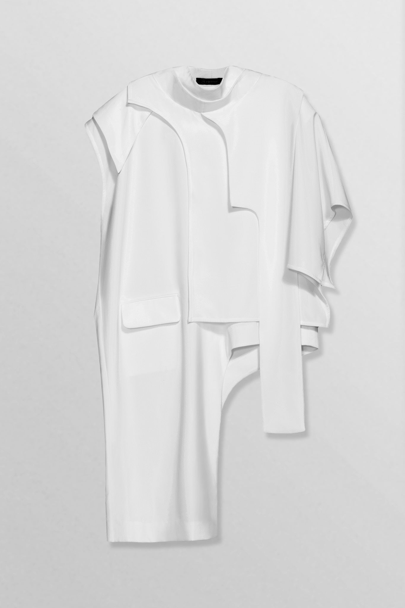 Ariga Torosian Asymmetrical layered tunic with high neck in white